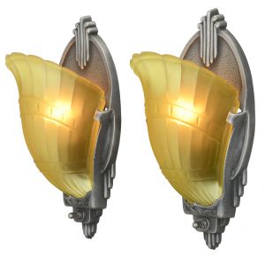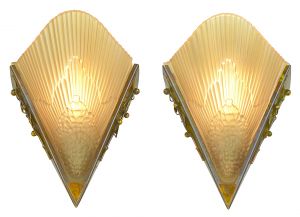 Art Deco Pair of Unusual Slip Shade Wall Sconces by Lincoln (ANT-1162)