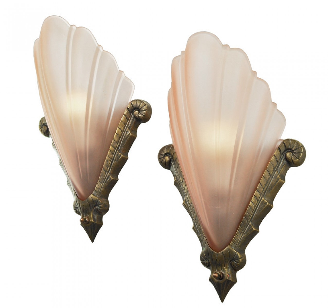 15-DK-PK Large Art Deco Sconce with Pink Shade