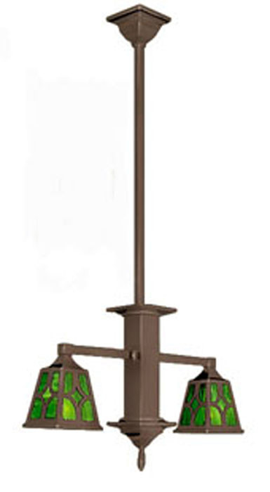 579-DJ2-EP Green Art Glass Mission 2 Arm Long Pendant Ceiling Light with Diamond Shade