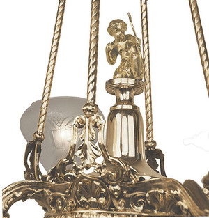 To complement this fixture, keep with the mythology theme with our Mercury sconce , with similarly detailed base.Or add light in your entry and staircase with our cupid newel post light . Another gaslight chandelier with matching gas key to Cupid is our 656-EL-5L , offering up to 500 watts of light. Don't forget the plaster ceiling medallion to finish off your period home with flair.