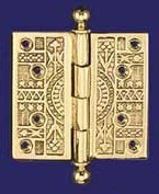 H-12BT Polished Unlacquered Brass 4" x 4" Eastlake Ball Finial Hinge