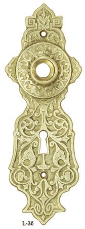 L-DK36 Antique Brass Finish Recreated Victorian Eastlake Door Plate