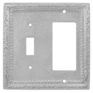 L-ZNW16 Pewter Finish Vintage Victorian GFI & Switch Combination Cover Plate