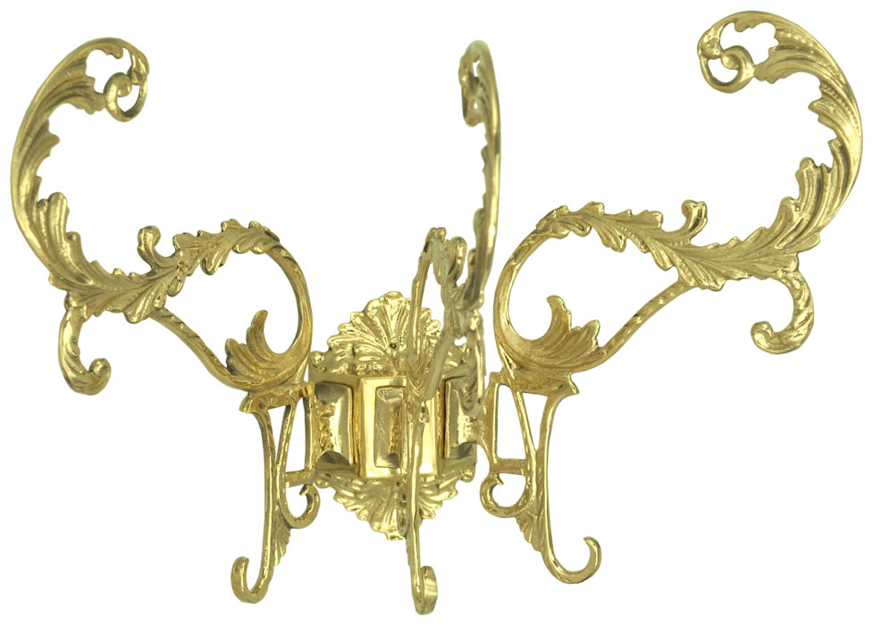 Only by Lost Wax brass casting could this giant victorian hall tree triple hook be made with such elegance and detail. Assembled by the customer with only three screws.
