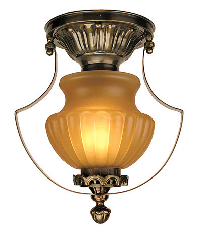 96-MP2-CCL Antique Brass Finish Reproduction Victorian Low Ceiling Light with Amber Shade