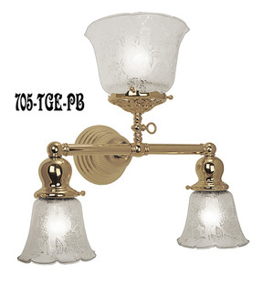 705-TGE-PB Polished Unlacquered Brass Light Reproduction Victorian Gas & Electric Triple Sconce
