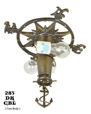 This is NOT a sheet-metal tinny light. Every part of this light is a brass casting with second machine operations. Being quality made, the frame alone approaches 4 pounds in weight (casting weights do vary slightly). Add our 0625G nautical shade which also weighs in a 4 pounds of glass and the resulting fixture is a substantial quality 8 pounds.