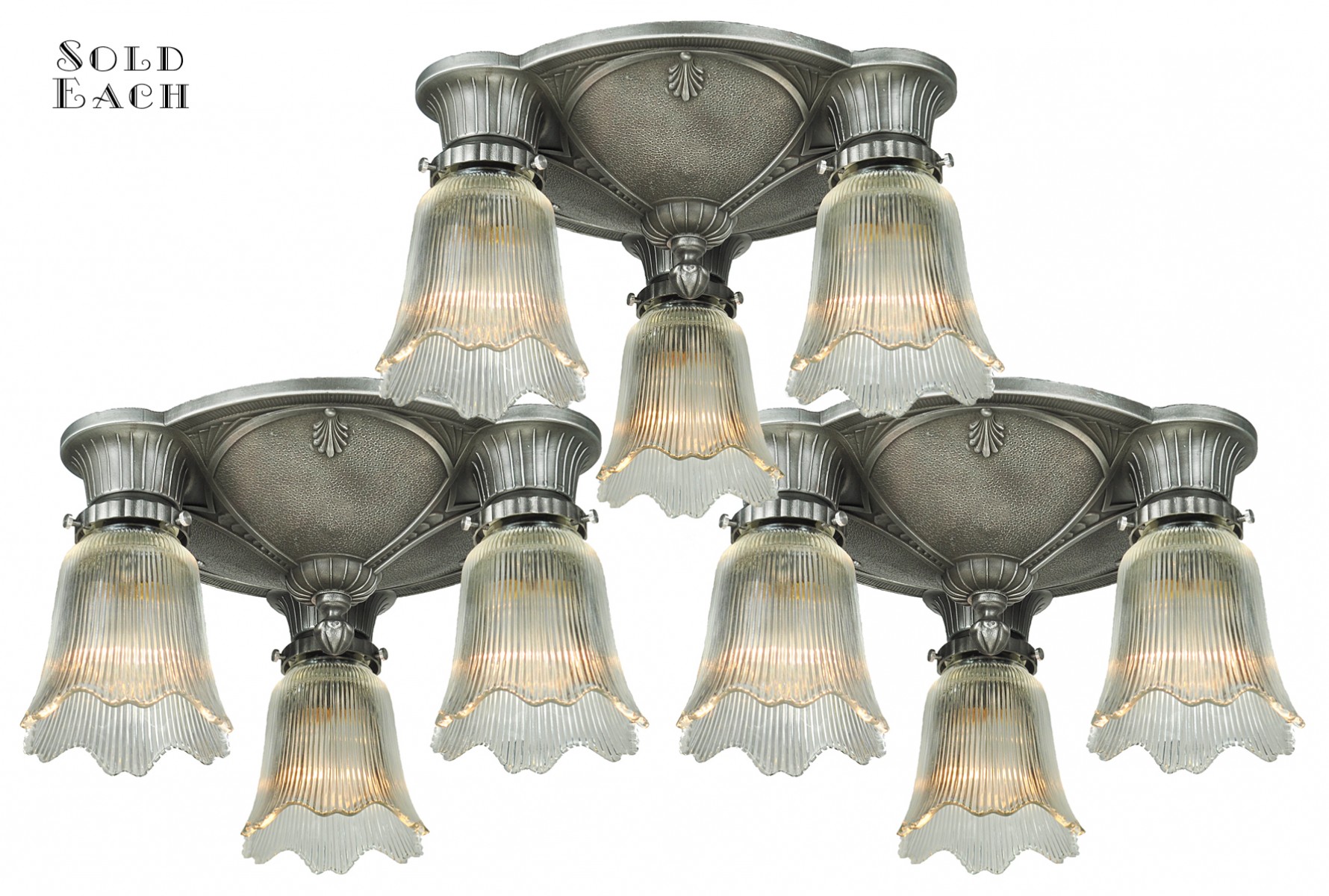 Price: $ 650.00 EACH for these UL restored close ceiling chandeliers complete with shades ...plus a small shipping charge. Besides being a nice single light—it is a good opportunity to buy a pair of matched lights...or all three!