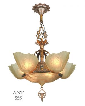 ANT-555 Antique Art Deco Slip Shade 6 Shade Chandelier by Markel