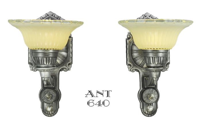ANT-640 Pair of Antique Streamline Art Deco Sconces Circa 1930