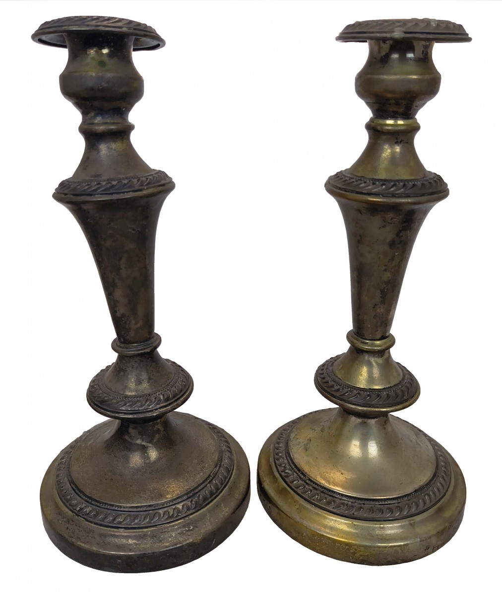 Circa 1900 Electro Plated Nickel Silver Candlesticks (ANT-SR221)