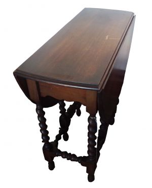 British drop leaf table, made of oak. Elegant twist legs, iconic of the Jacobean style.