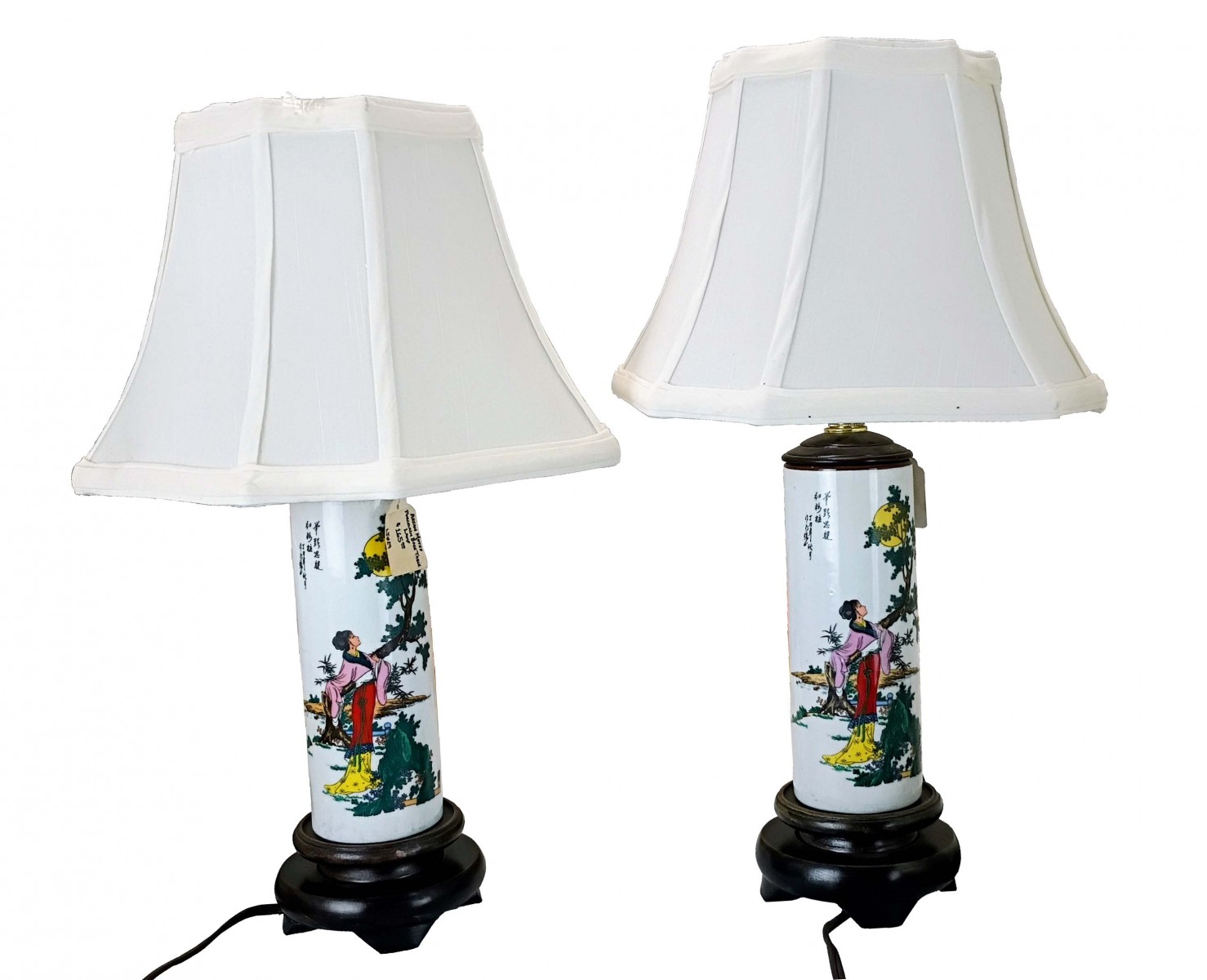 Vintage Handpainted Porcelain Lamp with Asian Motif (ANT-SR313)