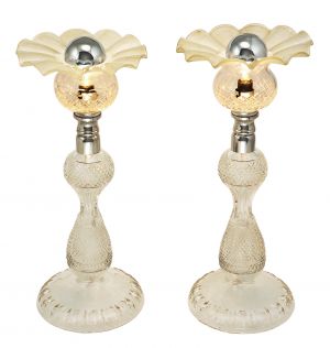 ANT-792 Pair of English Cut Crystal Flower Shaped Table Lamps for Ambient Lighting